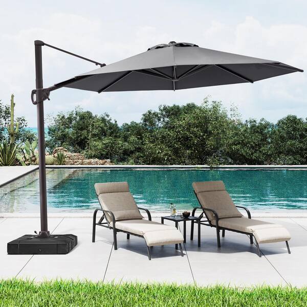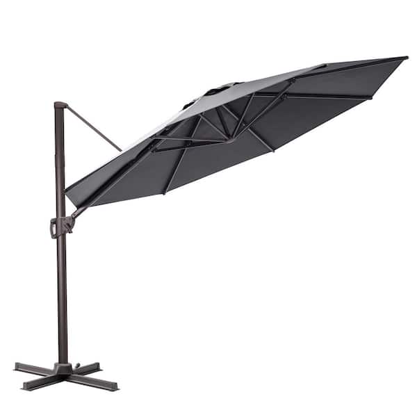11 ft. x 11 ft. Patio Cantilever Umbrella, Heavy-Duty Frame Round Umbrella in Dark Gray