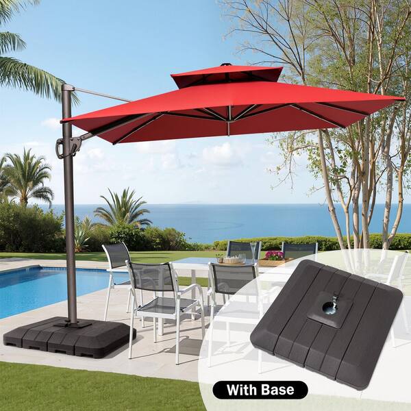 11 ft. x 9 ft. Double Top Rectangular Cantilever Patio Umbrella in Red with 220 lbs. HDPE Brown Base