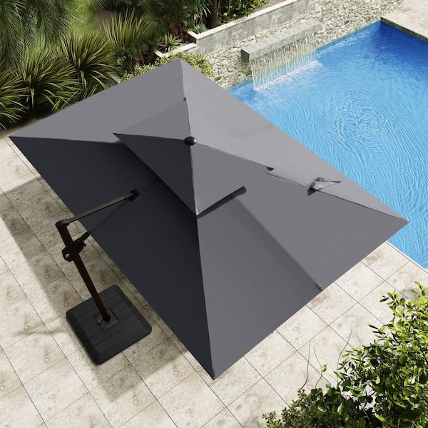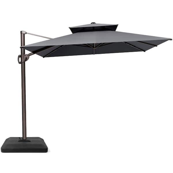 12 ft. x 9 ft. Double Top Cantilever Tilt Patio Umbrella in Dark Gray with 4-Piece 220 lbs. HDPE Base