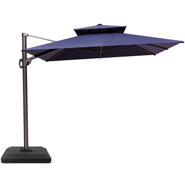 12 ft. x 9 ft. Double Top Cantilever Tilt Patio Umbrella in Navy Blue with 4-Piece 220 lbs. HDPE Base