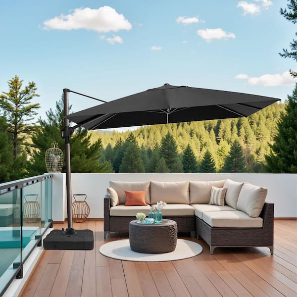 12 ft. x 9 ft. Rectangular Cantilever Tilt Patio Umbrella in Black with 260 lbs. Base Stand