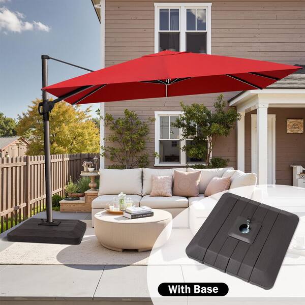 12 ft. x 9 ft. Rectangular Cantilever Tilt Patio Umbrella in Red with 220 lbs. HDPE Brown Base