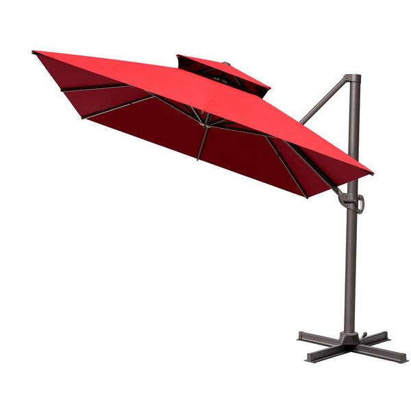 13 ft. x 10 ft. Double Top Rectangle Cantilever Patio Umbrella in Red