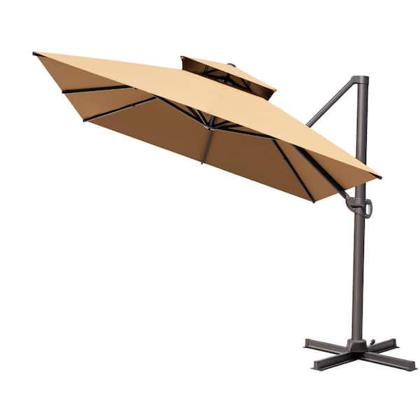 13 ft. x 10 ft. Double Top Rectangle Cantilever Patio Umbrella in Tan