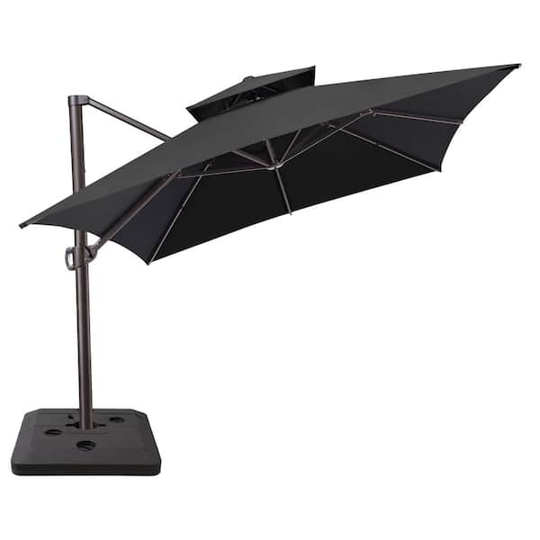 13 ft. x 10 ft. Double Top Rectangular Cantilever Patio Umbrella in Black with 240 lbs. Base Stand in Brown