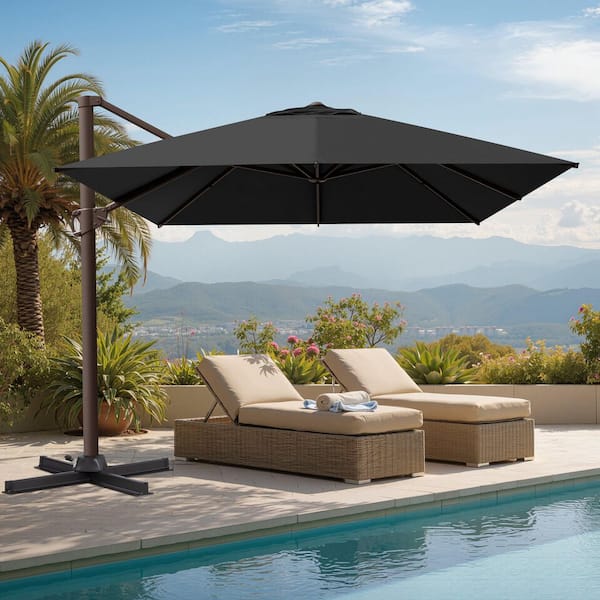 13 ft. x 10 ft. Rectangular 360° Rotation Cantilever Patio Umbrella in Black