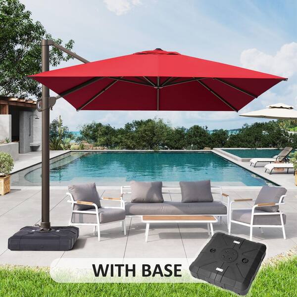 13 ft. x 10 ft. Swivel Cantilever Tilt Patio Umbrella in Red with HDPE Base Stand