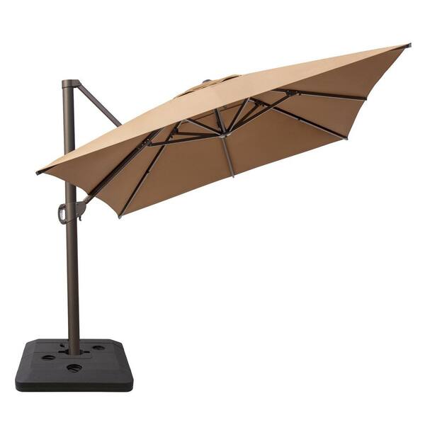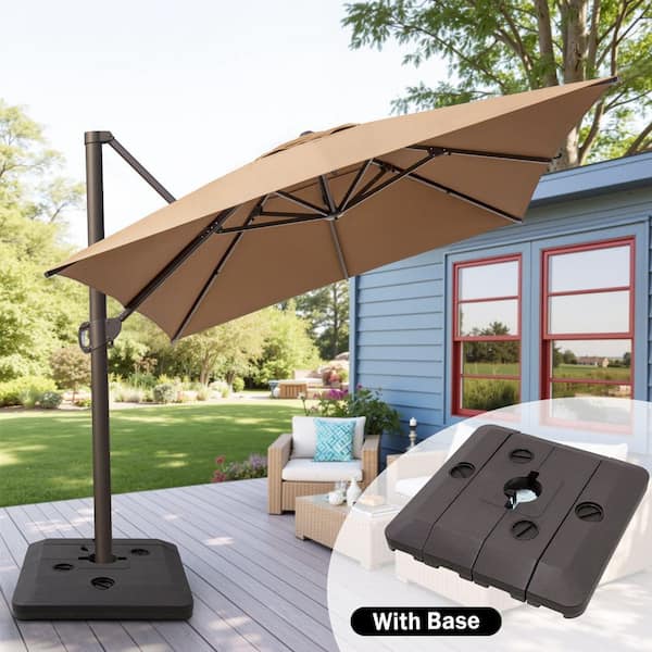 13 ft. x 10 ft. Swivel Cantilever Tilt Patio Umbrella in Tan with 240 lbs. HDPE Base Stand