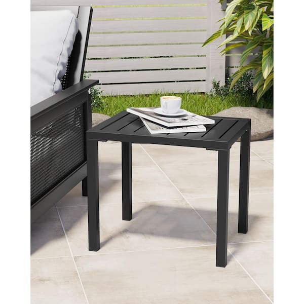 18 in. Rectangular Aluminum Outdoor Side Table in Black