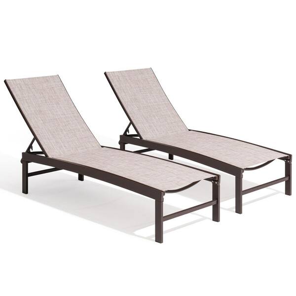 2-Piece Aluminum Adjustable Metal Outdoor Chaise Lounge in Beige
