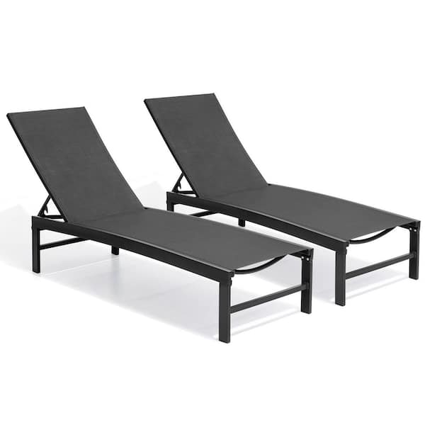2-Piece Aluminum Adjustable Metal Outdoor Chaise Lounge in Black