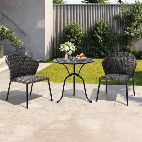 2-Piece Outdoor Garden Stackable Wicker Dining Chairs in Grey
