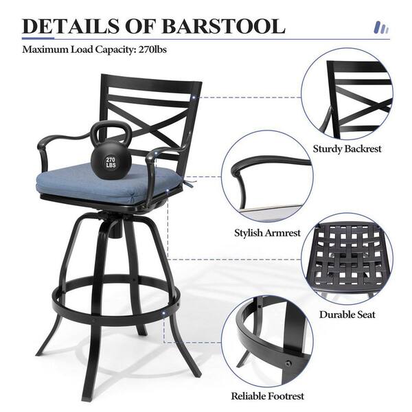 3-Piece Square Aluminum Outdoor Dining Set with 35.4 in. Table and Bar Stool in Blue