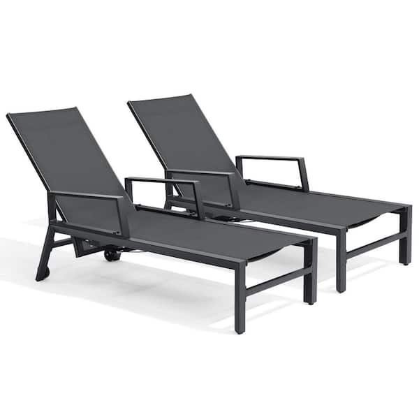 4-Piece Adjustable Aluminum Metal Armrest Outdoor Chaise Lounge in Black