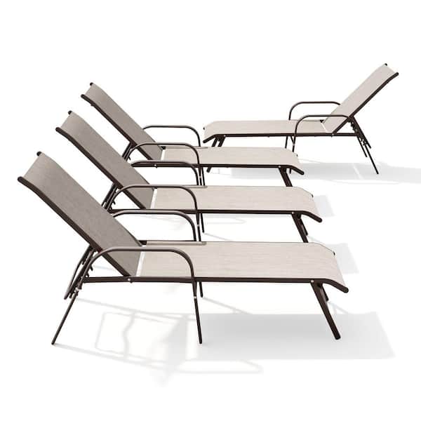 4-Piece Aluminum Adjustable Metal Outdoor Chaise Lounge in Beige with Armrests