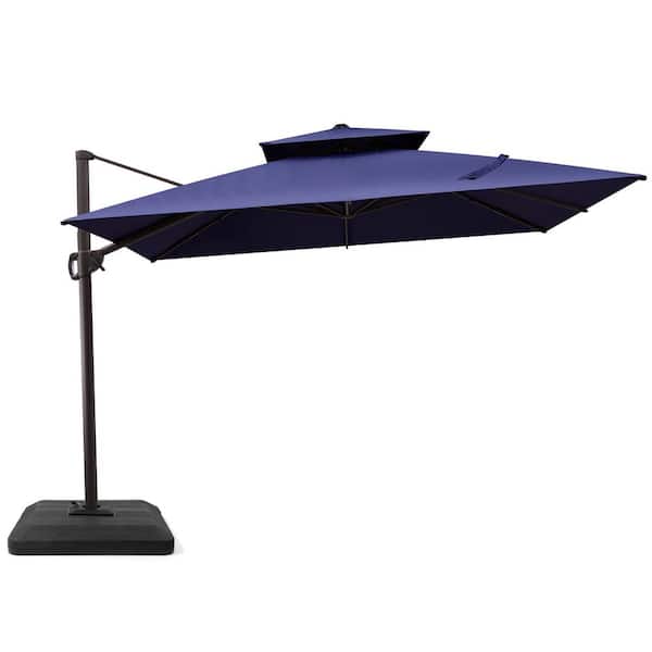 9.5 ft. x 9.5 ft. Double Top Cantilever Patio Umbrella in Navy Blue with 220 lbs. HDPE Base