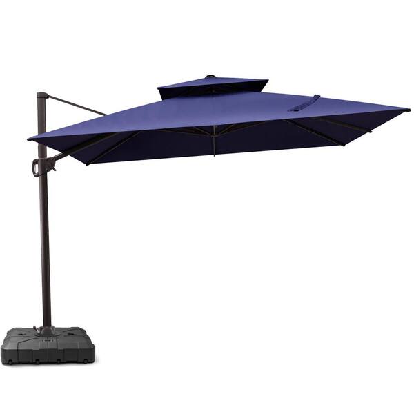 9.5 ft. x 9.5 ft. Double Top Cantilever Patio Umbrella in Navy Blue with 260 lbs. Base Stand