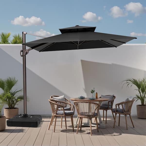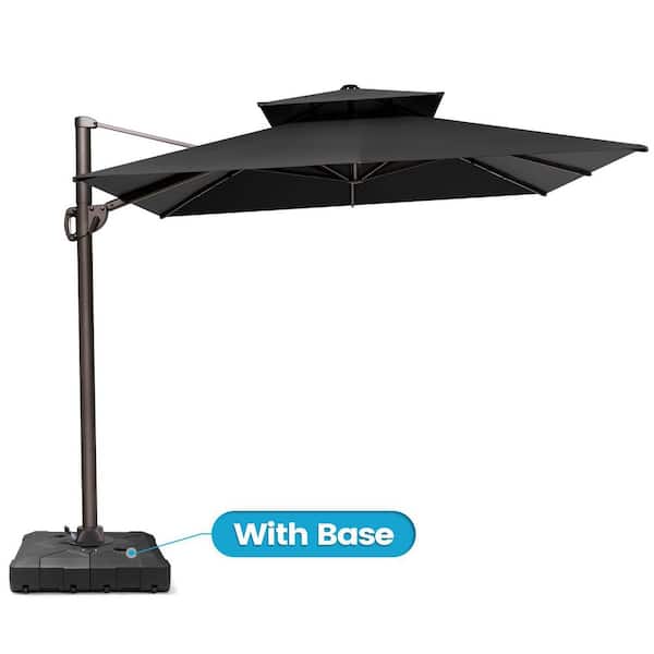9 ft. x 11.5 ft. Double Top Cantilever Patio Umbrella in Black with 220 lbs. Base Stand