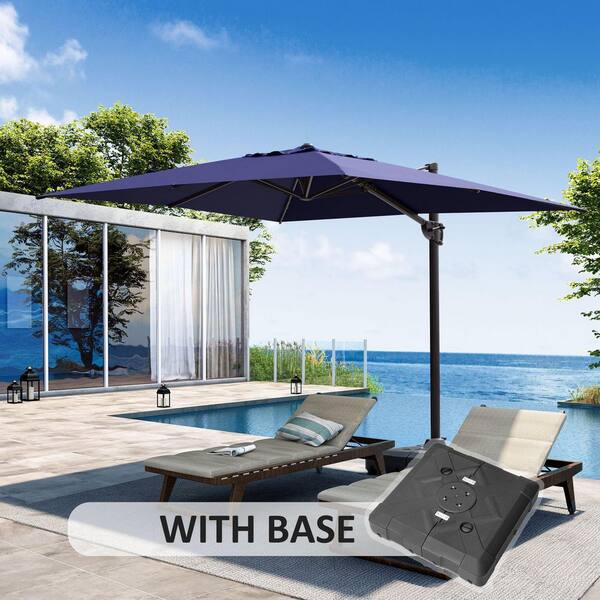 9 ft. x 11 ft. Swivel Top Cantilever Tilt Patio Umbrella in Navy Blue with HDPE Base Stand