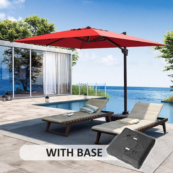 9 ft. x 11 ft. Swivel Top Cantilever Tilt Patio Umbrella in Red with HDPE Base Stand
