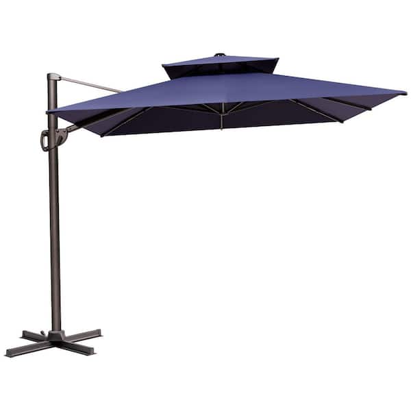 9 ft. x 12 ft. Double Top Heavy-Duty Frame Rectangular Cantilever Patio Umbrella in Navy Blue