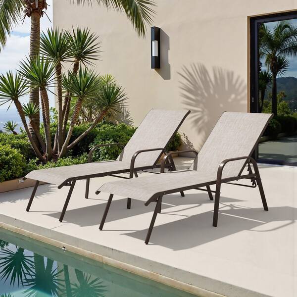 Beige 2-Piece Metal Adjustable Outdoor Chaise Lounge