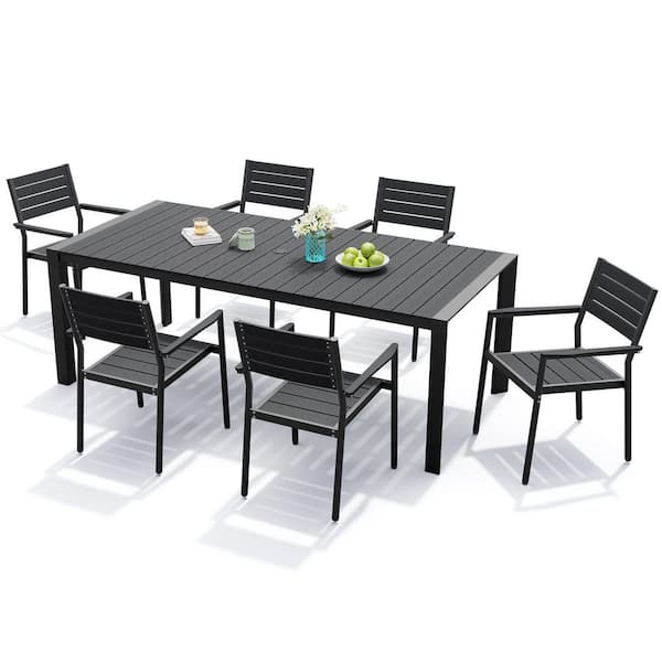 Black 7-Piece Aluminum Rectangular 71.42 in. Table Outdoor Dining Set with Armchairs