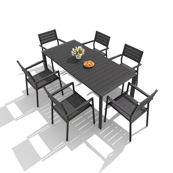 Black 7-Piece Aluminum Rectangular 71.42 in. Table Outdoor Dining Set with Armchairs