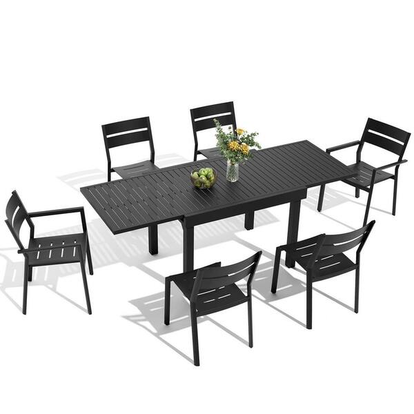 Black 7-Piece Metal Outdoor Dining Set with 82.68 in. Extension Table and Stackable Chairs