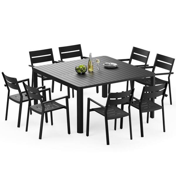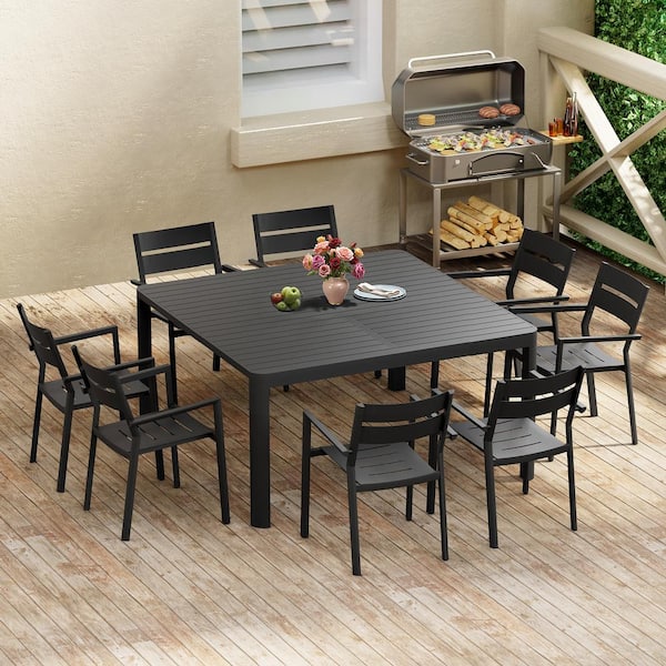 Black 9-Piece Aluminum Outdoor Dining Set with 58.6 in. Extension and Armchair
