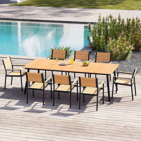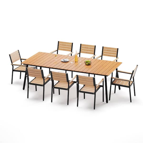 Brown 9-Piece Aluminum Rectangular 94.5 in. Table Outdoor Dining Set with Armchairs