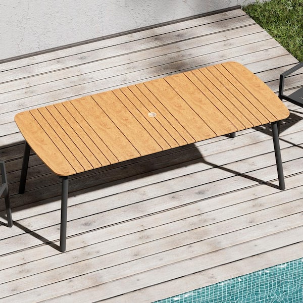 Brown Rectangular 81.5 in. Aluminum Outdoor Dining Table with Umbrella Hole
