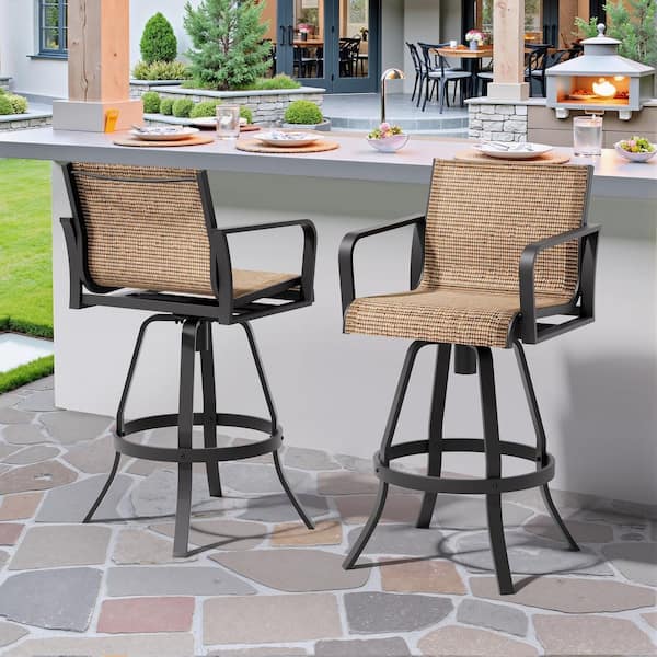 Cast Aluminum Outdoor Bar Stool in Brown (2-Pack)