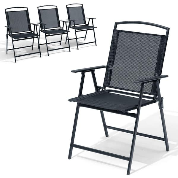 Foldable Metal Outdoor Dining Chair in Black (4-Pack)
