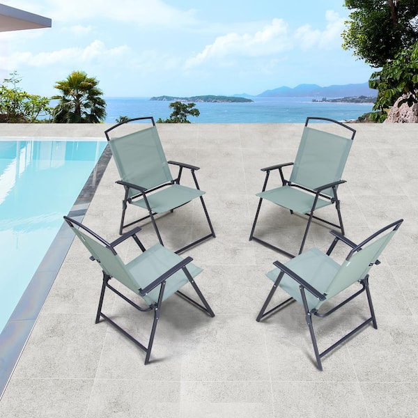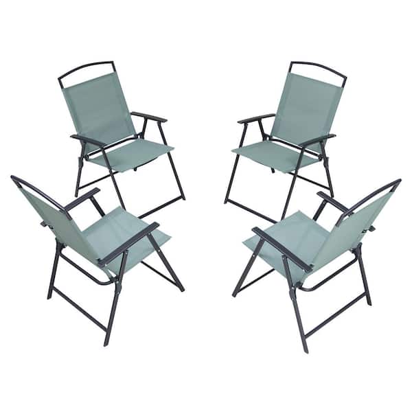 Foldable Metal Outdoor Dining Chair in Green (4-Pack)