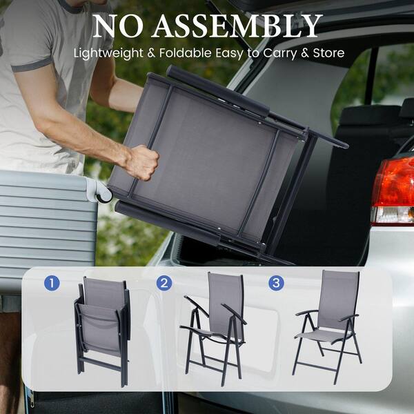 Metal Foldable Adjustable Back Outdoor Dining Chair in Gray (4-Pack)