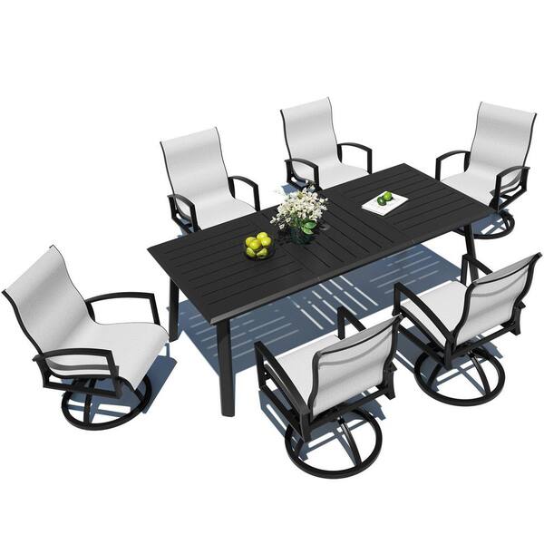 Oyster 7-Piece Rectangular Aluminum Outdoor Dining Set with 82.7 in. Table and Armchair