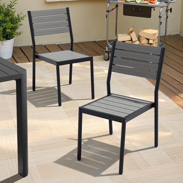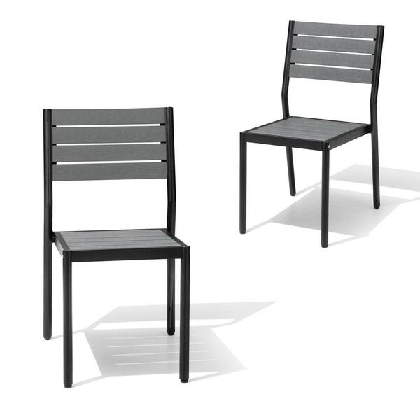 Stackable Gray Wooden Metal Outdoor Dining Chair (2-Pack)