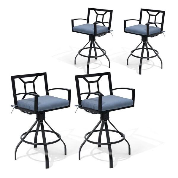 Swivel Aluminum Outdoor Bar Stool with Blue Sunbrella Cushion (4-Pack)