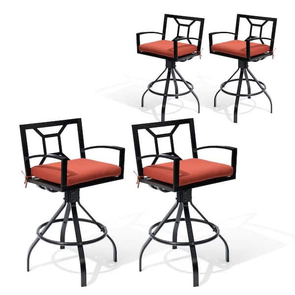 Swivel Aluminum Outdoor Bar Stool with Red Sunbrella Cushion (4-Pack)