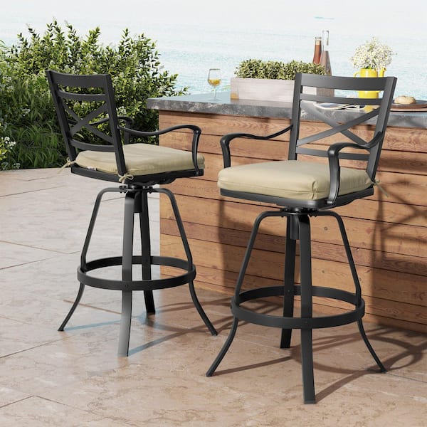 Swivel Aluminum Outdoor Bar Stool with Sunbrella Beige Cushion (2-Pack)
