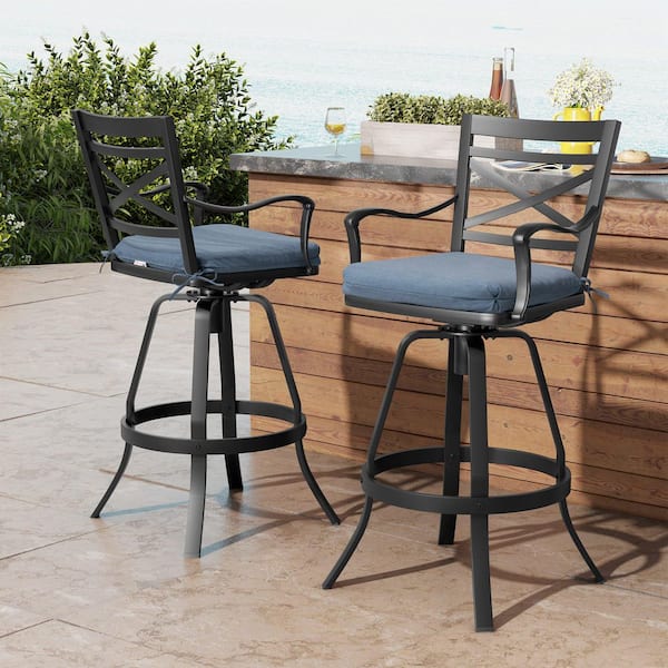 Swivel Aluminum Outdoor Bar Stool with Sunbrella Blue Cushion (2-Pack)