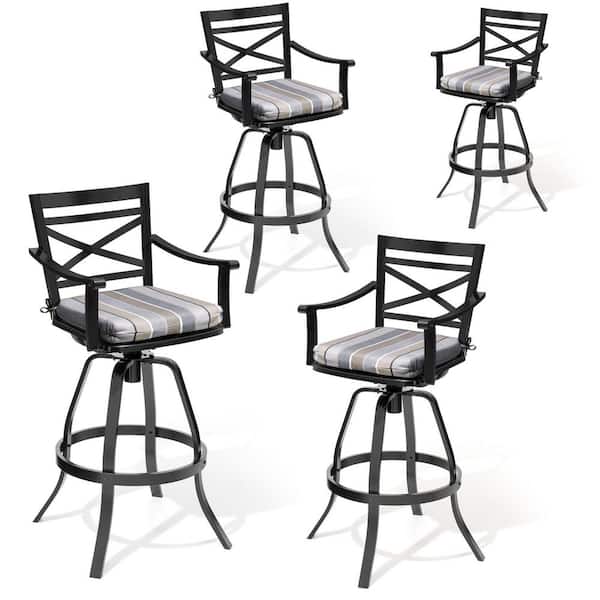 Swivel Cast Aluminum Outdoor Bar Stool with Milano Char Cushion (4-Pack)