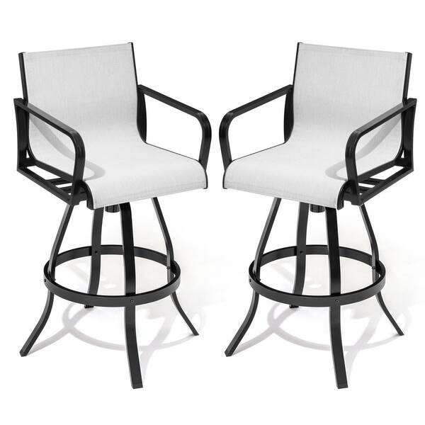 Swivel Sunbrella Seats Aluminum Frame Outdoor Bar Stool in Augustine Oyster (2-Pack)