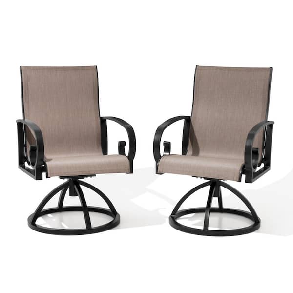 Swivel Sunbrella Seats Metal Frame Outdoor Patio Dining Chair in Augustine Ashe (2-Pack)