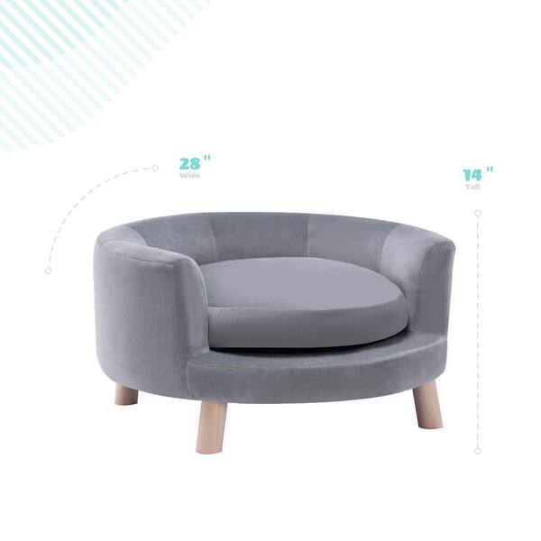 28 in. Medium Elegant Gray Faux-Velvet Circular Pet Bed for Small to Medium-Sized Dogs and Cats