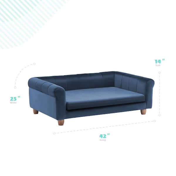 42 in. Large Navy Elegant Faux-Velvet Rectangle Pet Bed