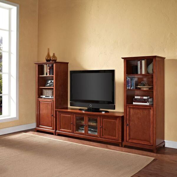 Newport Low Profile TV Stand and 2-Audio Piers in Cherry
