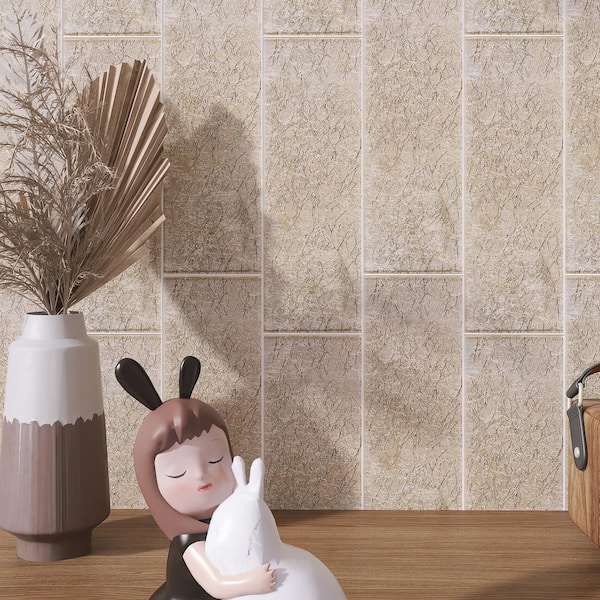 Crystile Galaxy Gold 12 in. x 4 in. Subway Glossy Glass Mosaic Tile Sample