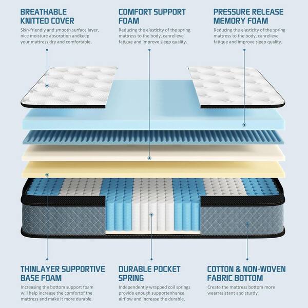 Queen Medium Firm Hybrid Memory Foam and Pocket Spring 14 in. Bed in a Box Pillow Top Mattress